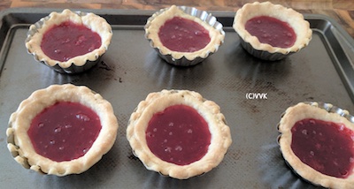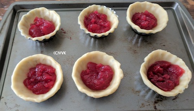 - Be careful not to overfill as the jam. Fill about ¾ of the tart cup.