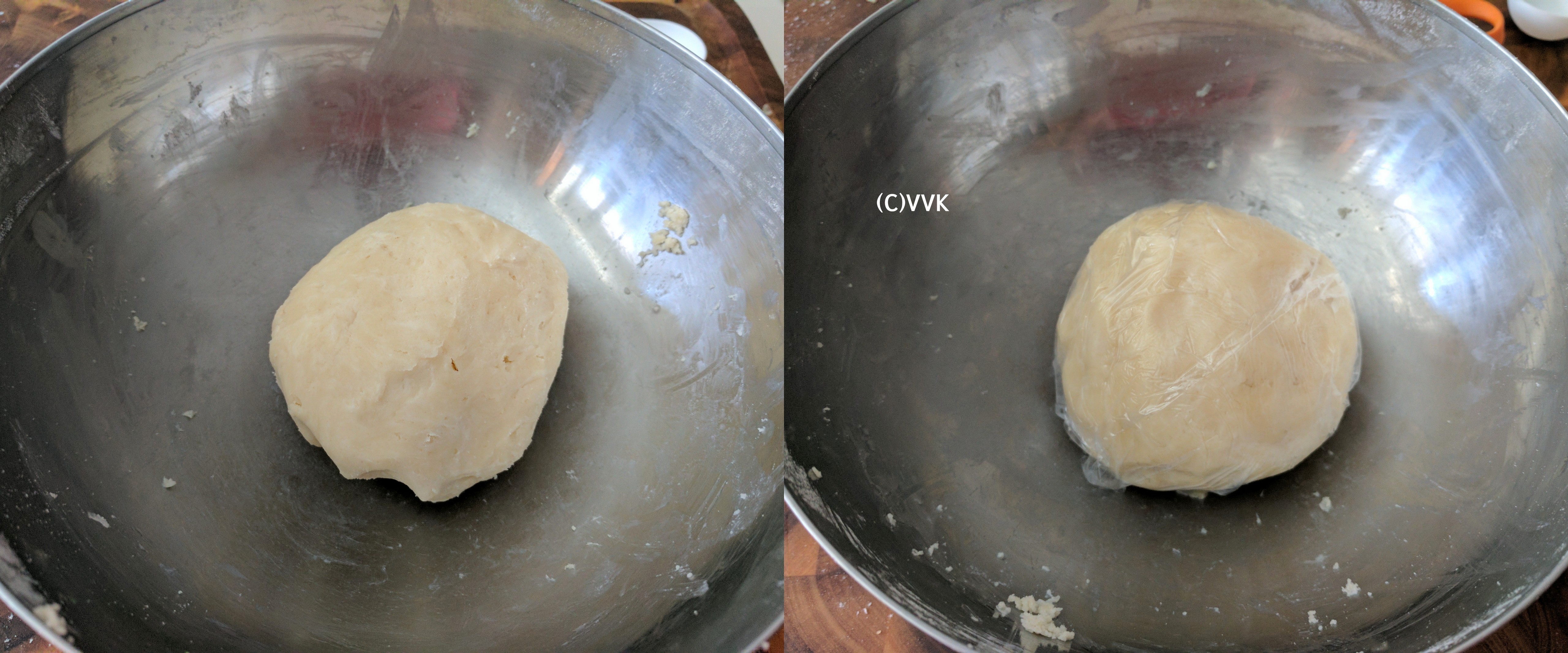 - When it comes together, wrap the dough in cling film and chill for a minimum of 15 minutes, up to 30 minutes.