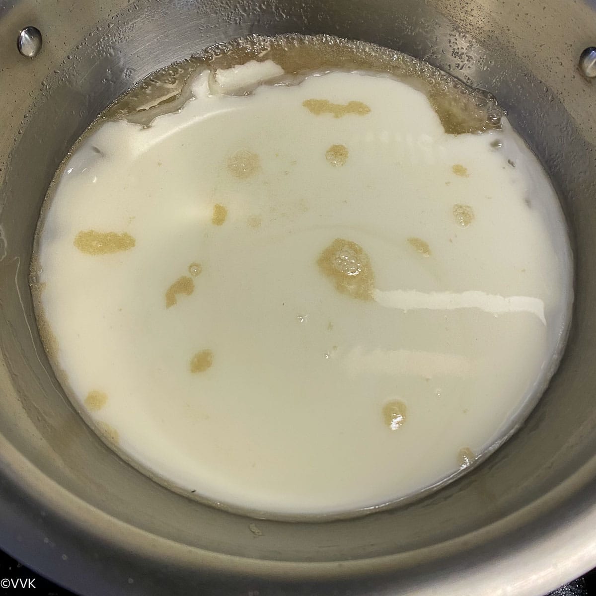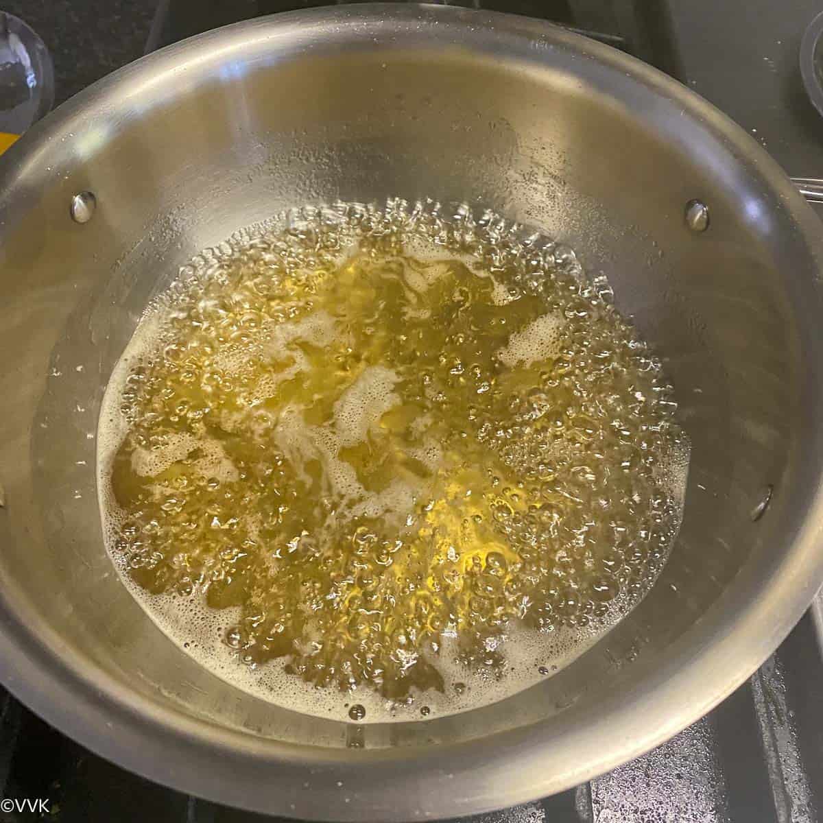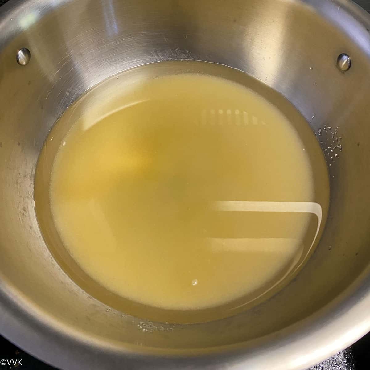 - Meanwhile, mix the remaining one cup of water and sugar in a heavy bottom pan.