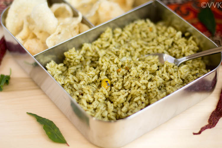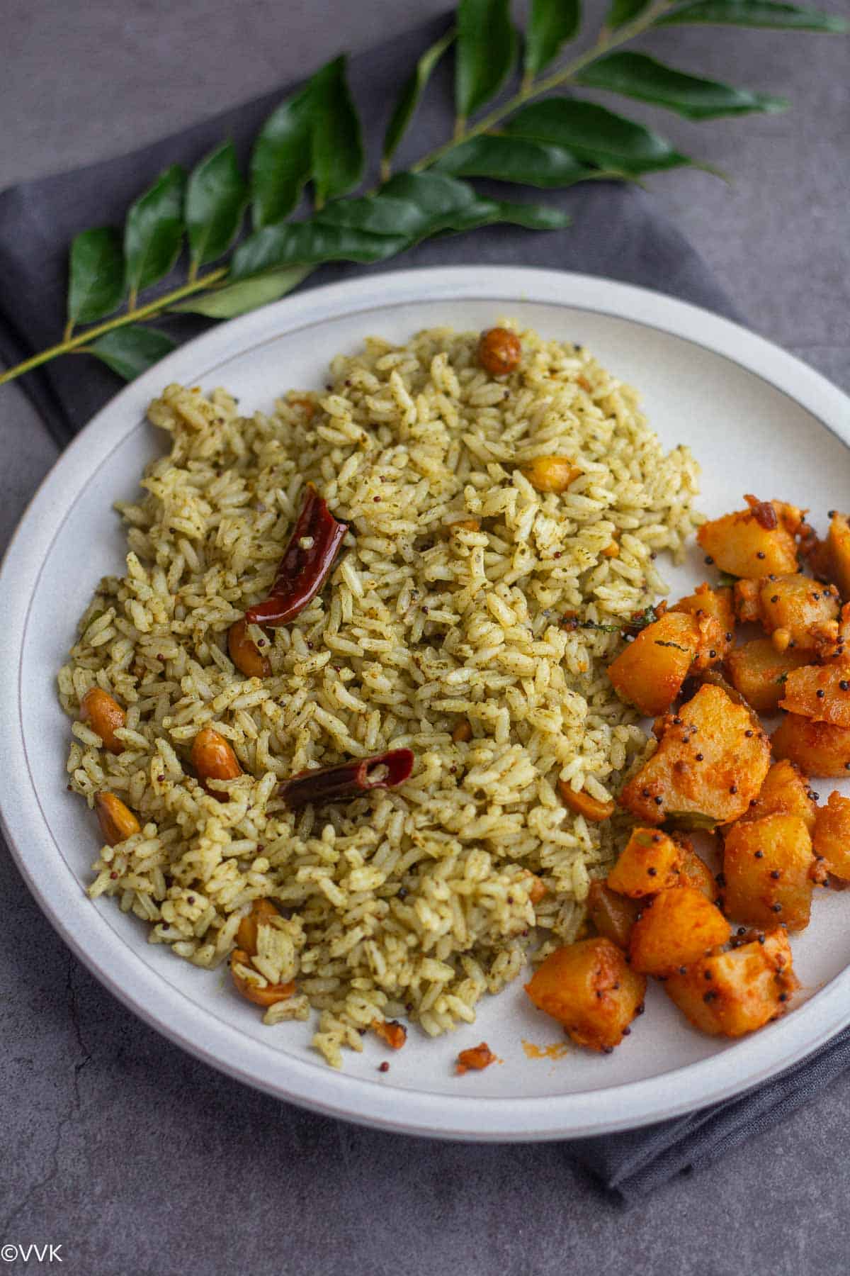 Discover how to make this delicious and aromatic curry leaves rice, a popular Andhra/Telangana dish known as karivepaku pulihora in Telugu. Follow this recipe with step-by-step instructions and detailed pictures.