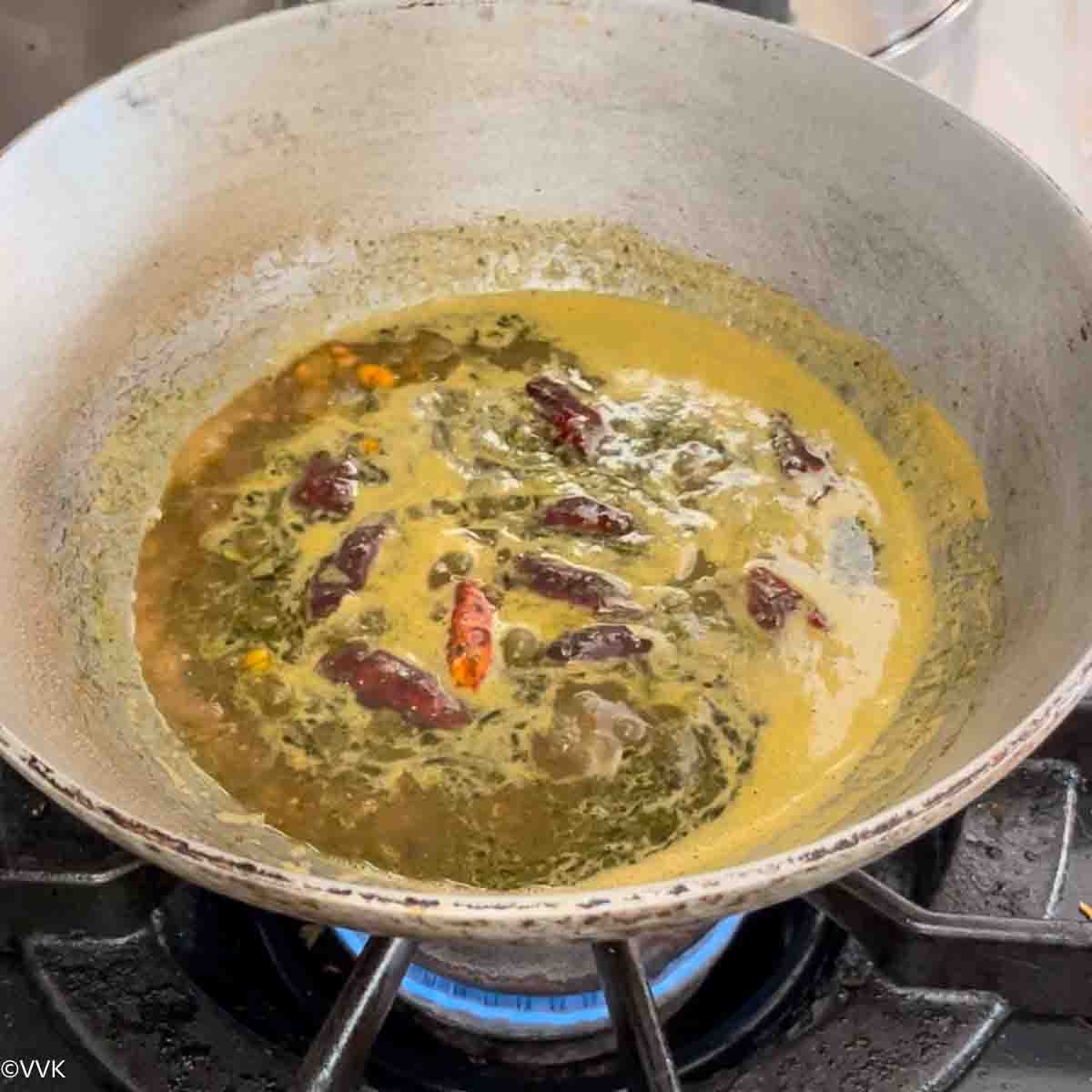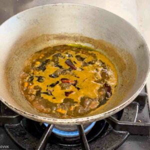 - Mix in the curry leaves powder and continue boiling until the mixture thickens.
