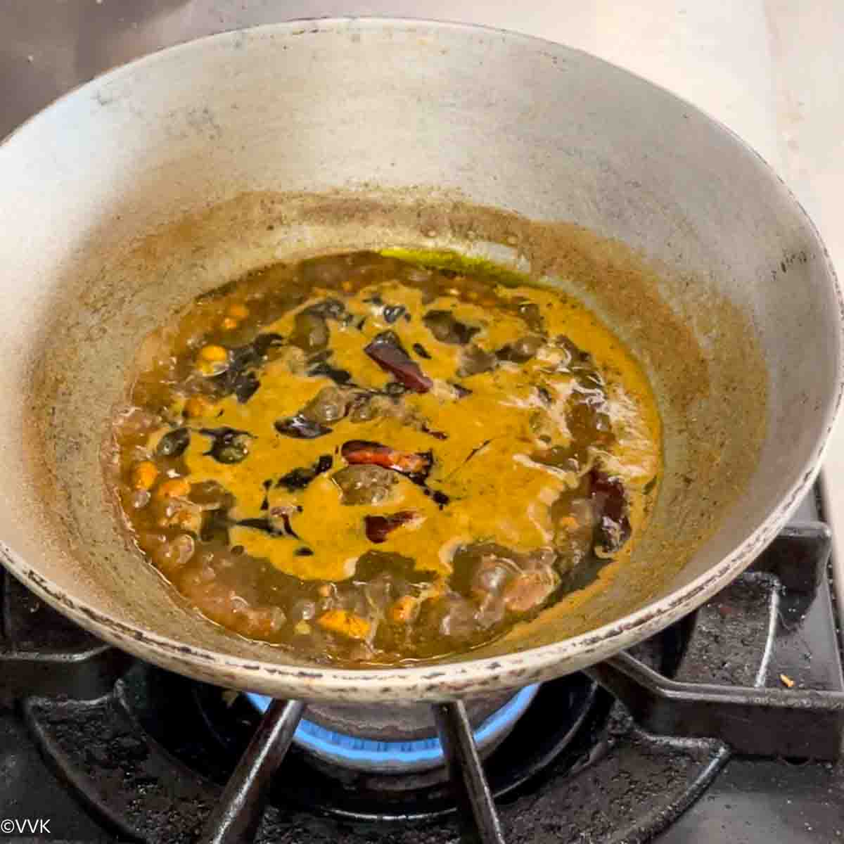 Tamarind paste: The souring agent we use is tamarind; you can use tamarind paste or tamarind pulp.