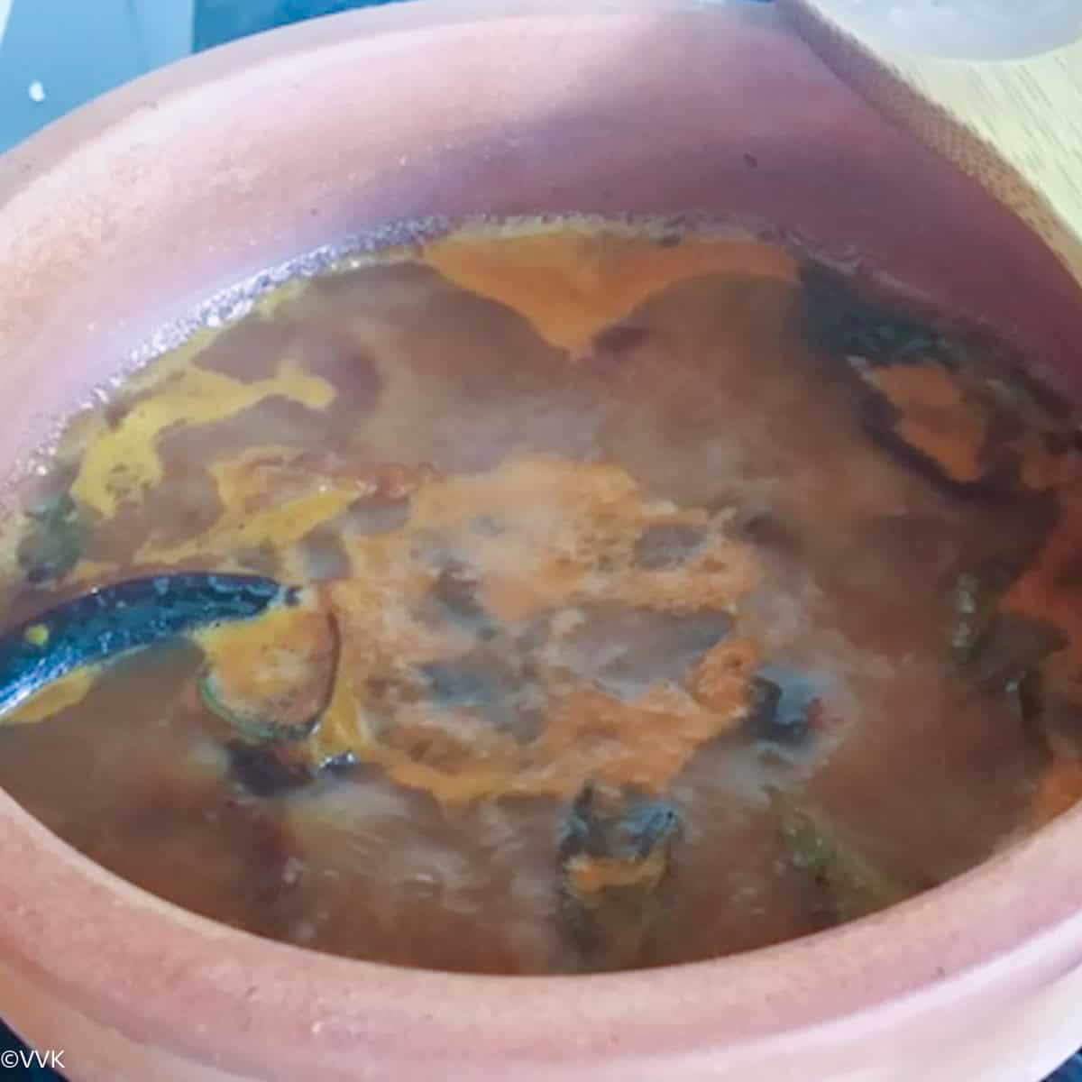 - Bring it to one more boil, and that’s it. Kuzhambu is ready.