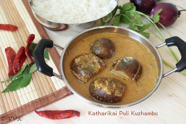- That's it! Your delicious kathirikai puli kuzhambu is ready to be served hot with rice.