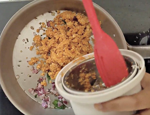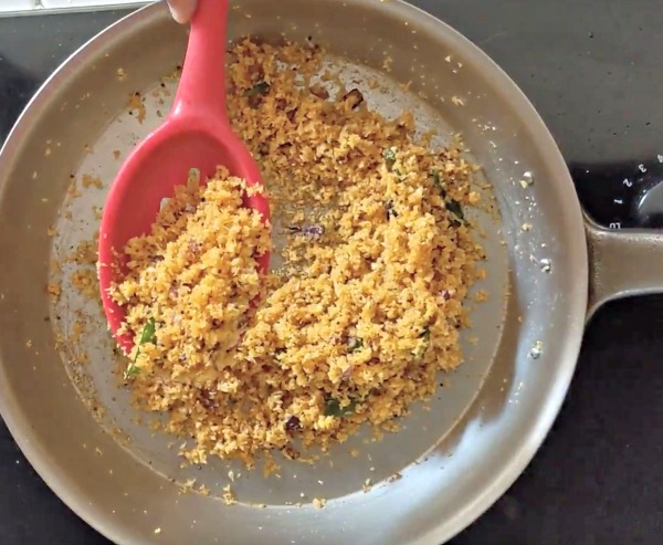 - Over medium heat, saute the ground coconut mix for approx 60 to 90 seconds. Turn off the heat.