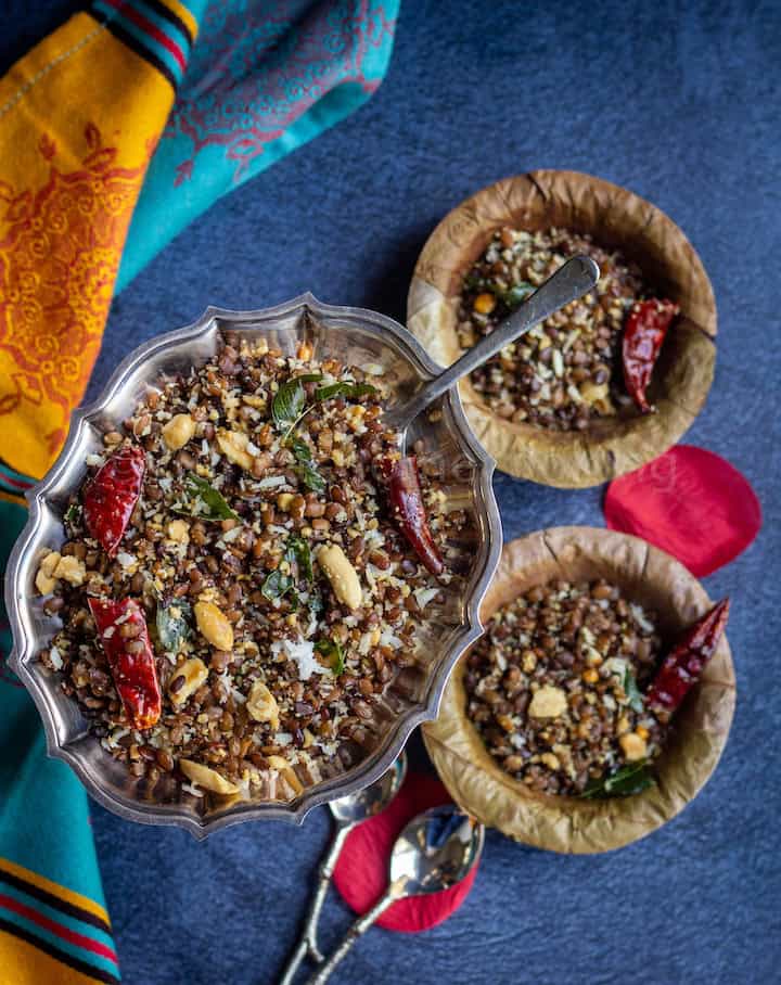 The peanuts and coconut add a nice crunch to this sundal and make it delicious, and if you are trying to get acquired to the taste of horse gram, this sundal will be the best bet.