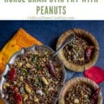 Now, what makes this kollu sundal unique – the peanut powder. I used store-bought roasted peanuts. If you are using raw peanuts, roast them before grinding. You can use it with the skin. I used roasted, salted, and skinned peanuts. So I directly pulsed it coarsely. Make sure to leave one or two peanuts for the crunch and texture.