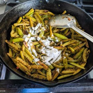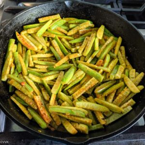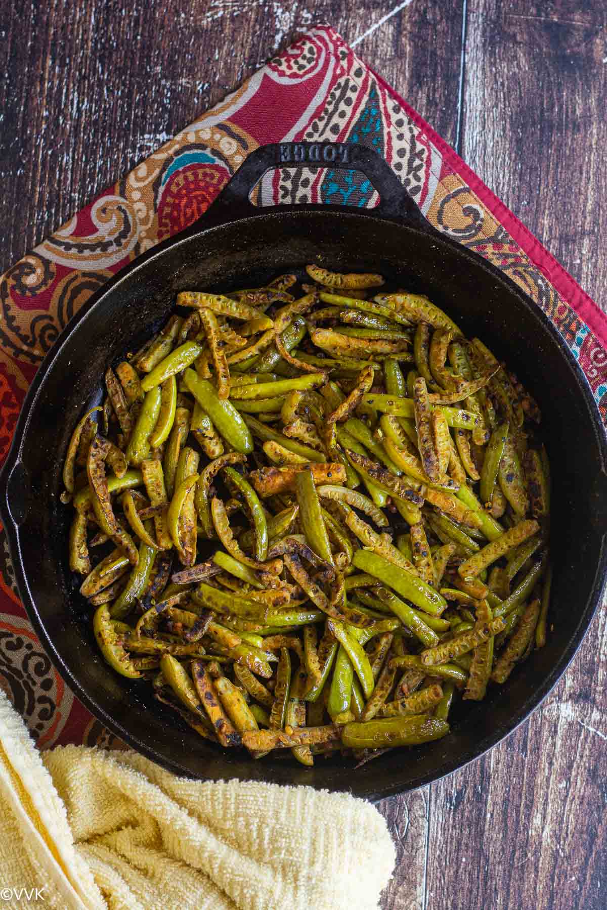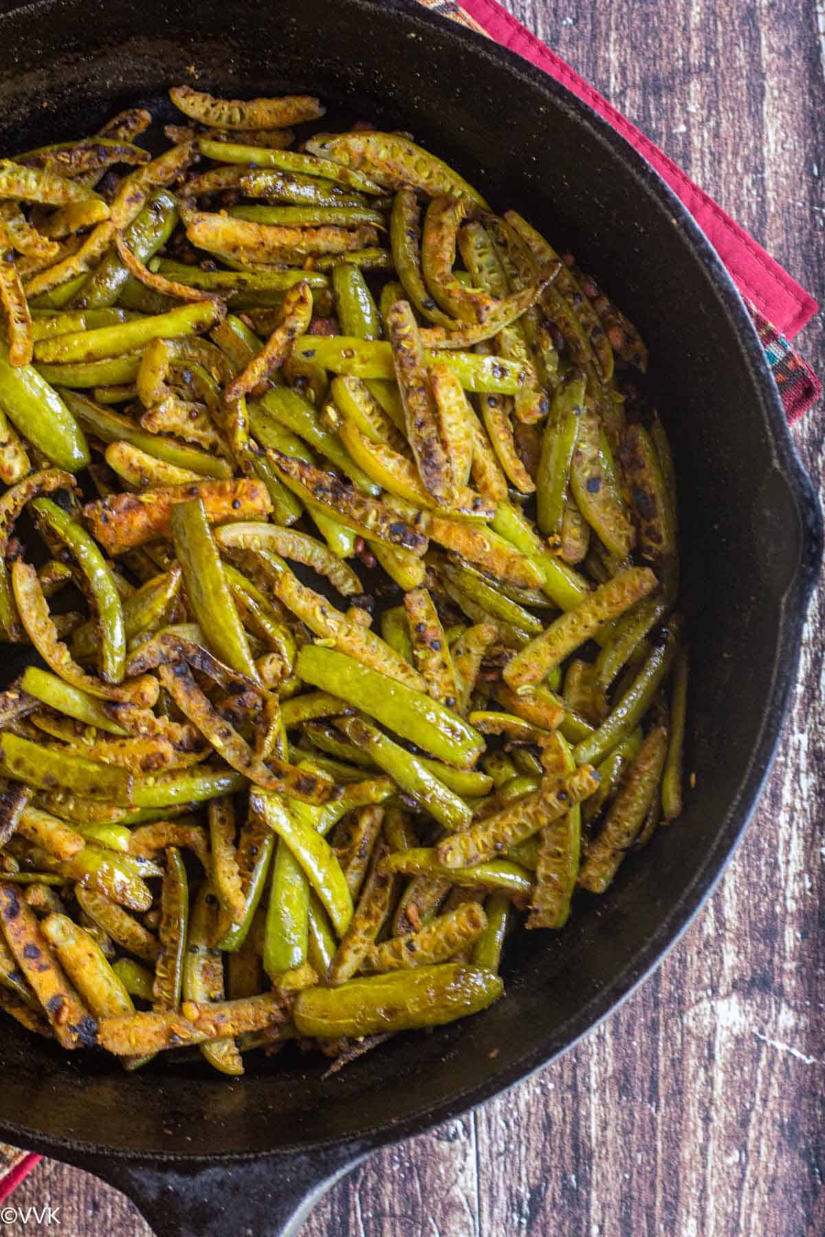 Simple and no-frill ivy gourd stir fry or kovakkai poriyal/kari as we say in Tamil – a perfect everyday curry that pairs well with rice! Learn how to make this simple curry in a cast iron pan with detailed step-wise pictures.
