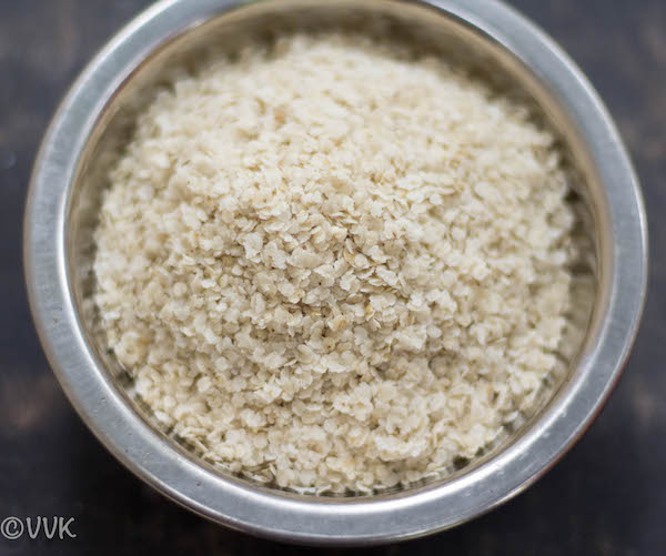 - Instead of drizzling water over barnyard millet flakes, you can soak the barnyard millet flakes in water and if you are soaking it thoroughly, then drain the water after 3 to 4 minutes. Do not let it soak for more than 5 minutes. If not the upma will be sticky.