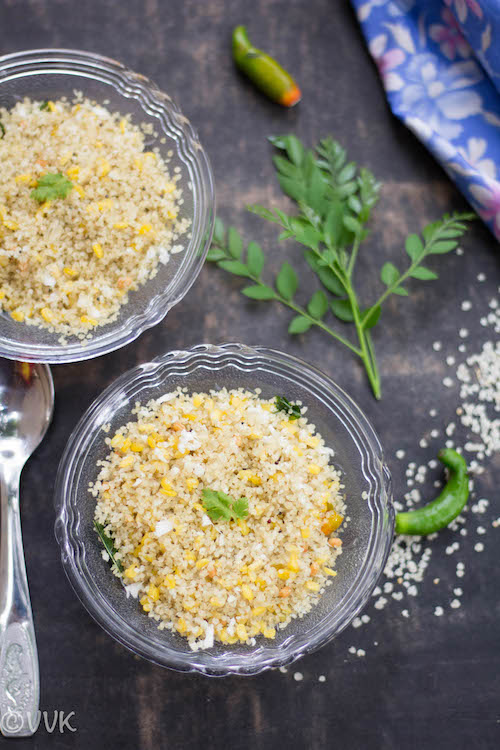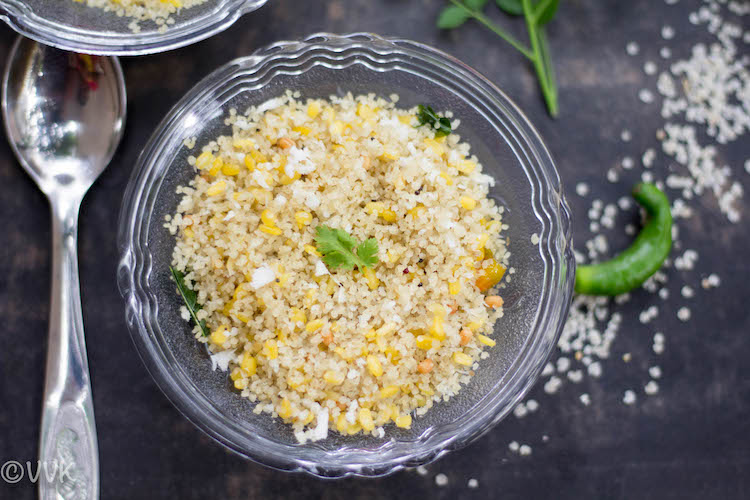 - 1 tbsp of coconut oil is on the higher side, but it adds nice fragrance and doesn’t let the upma go dry.
