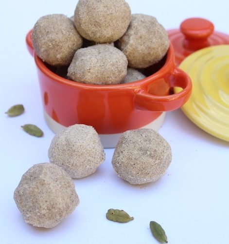 It’s a vegan, gluten-free, and nut-free sweet recipe. The below measure yields 12 to 13 laddus/balls. Store in an airtight container. And it stays good for about ten days at room temperature and more when refrigerated.