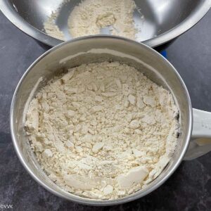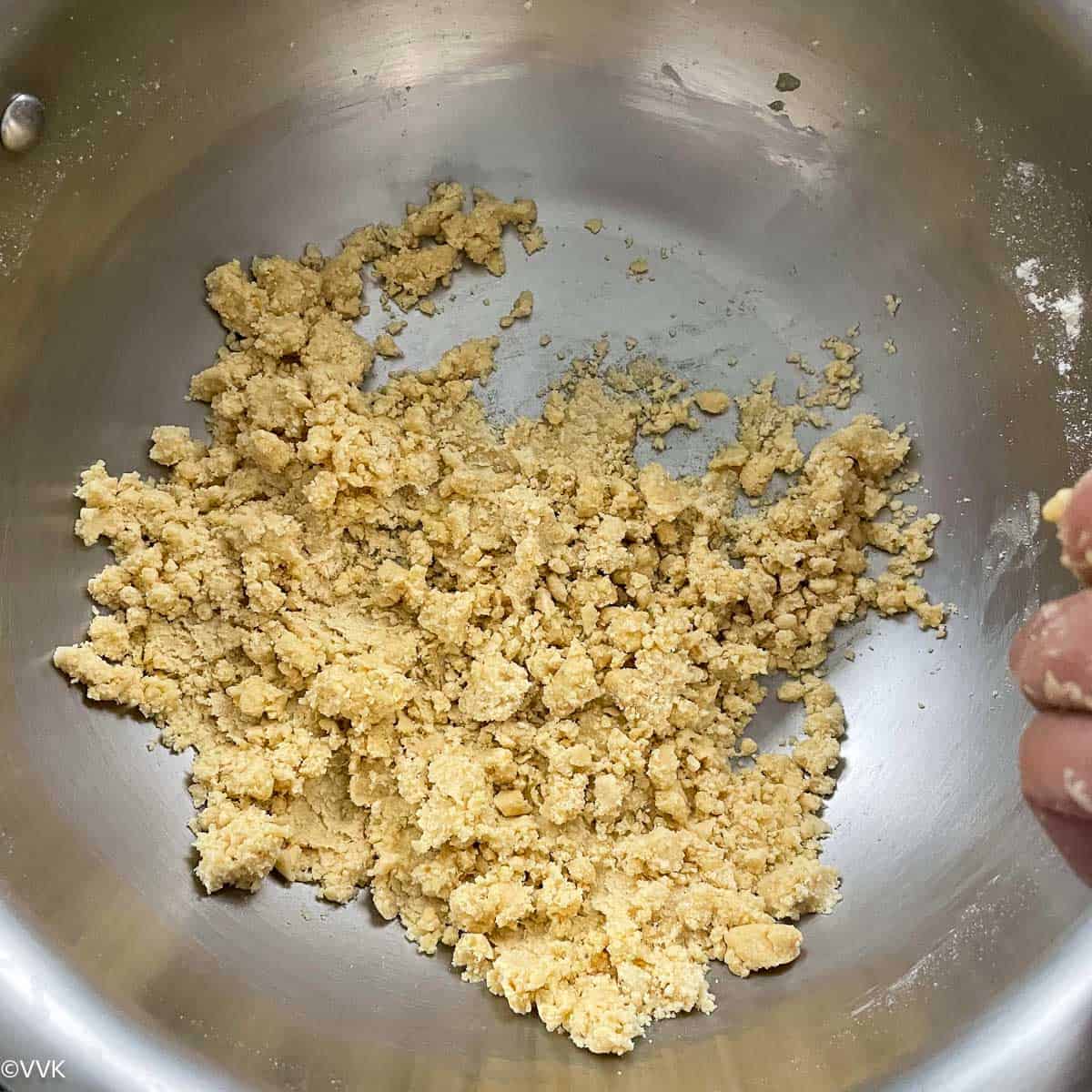 Note if you are making a big batch of maladu – In that case, portion the prepared flour and add ghee as required to the small batch. Do not add the entire ghee at once.