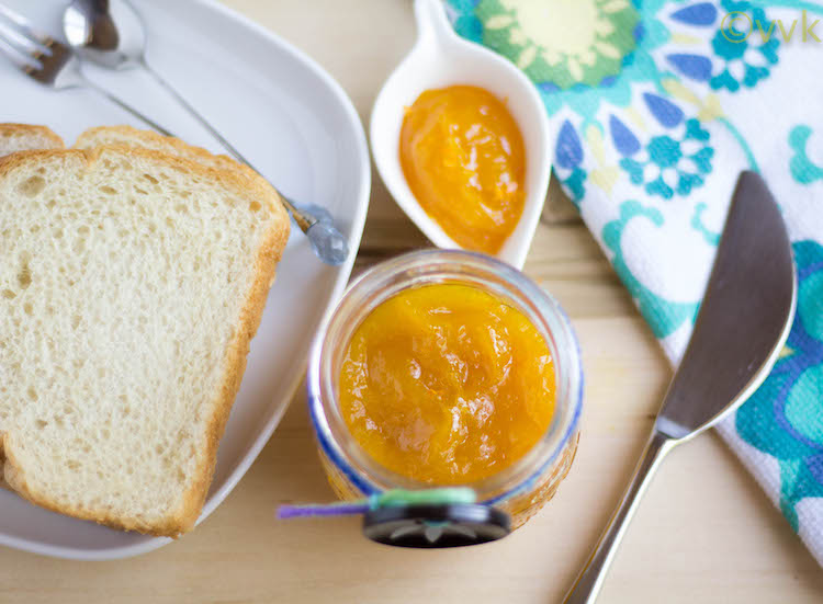 I am back with a mango recipe. This time it is the Mango Jam. The delicious mango jam will surely brighten up your breakfast table, and it is the perfect side for your toast or bagel. All you need is some fresh mango, sugar and some lemon juice and zest to prepare this jam.