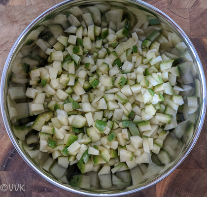 - 1 green mango After cutting into small square pieces, I got about 2 cups