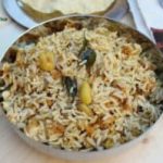 This delightful dish is made with grated raw mango, freshly ground coconut (or dry coconut), fenugreek seeds, and red chilies. The tangy sourness of the mango pairs beautifully with the slight bitterness of fenugreek seeds and is balanced perfectly by the coconut and red chilies. Served with raita or fryums, mango rice makes for a satisfying and complete meal.