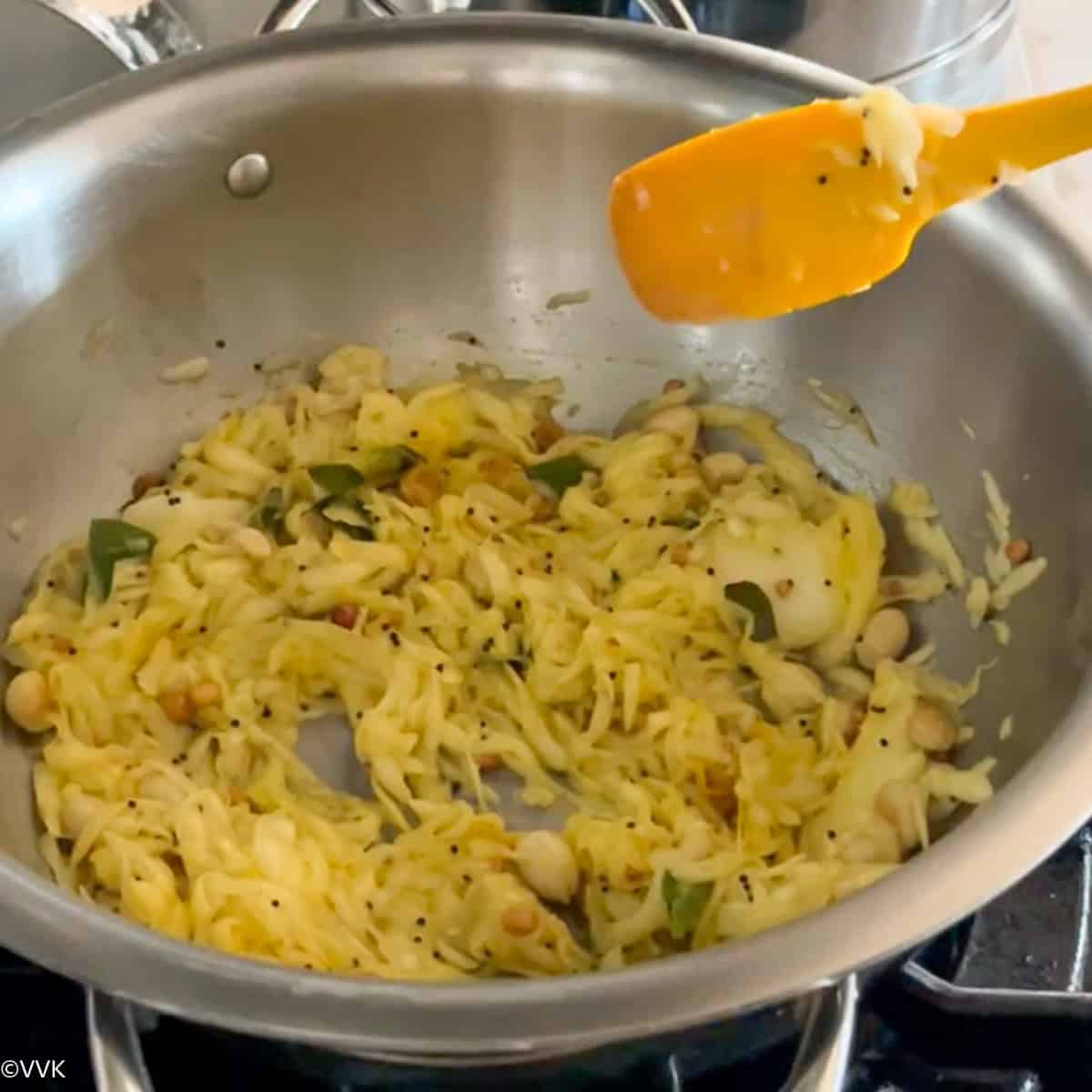 - Mix. Gingelly oil helps to keep the rice non-sticky.