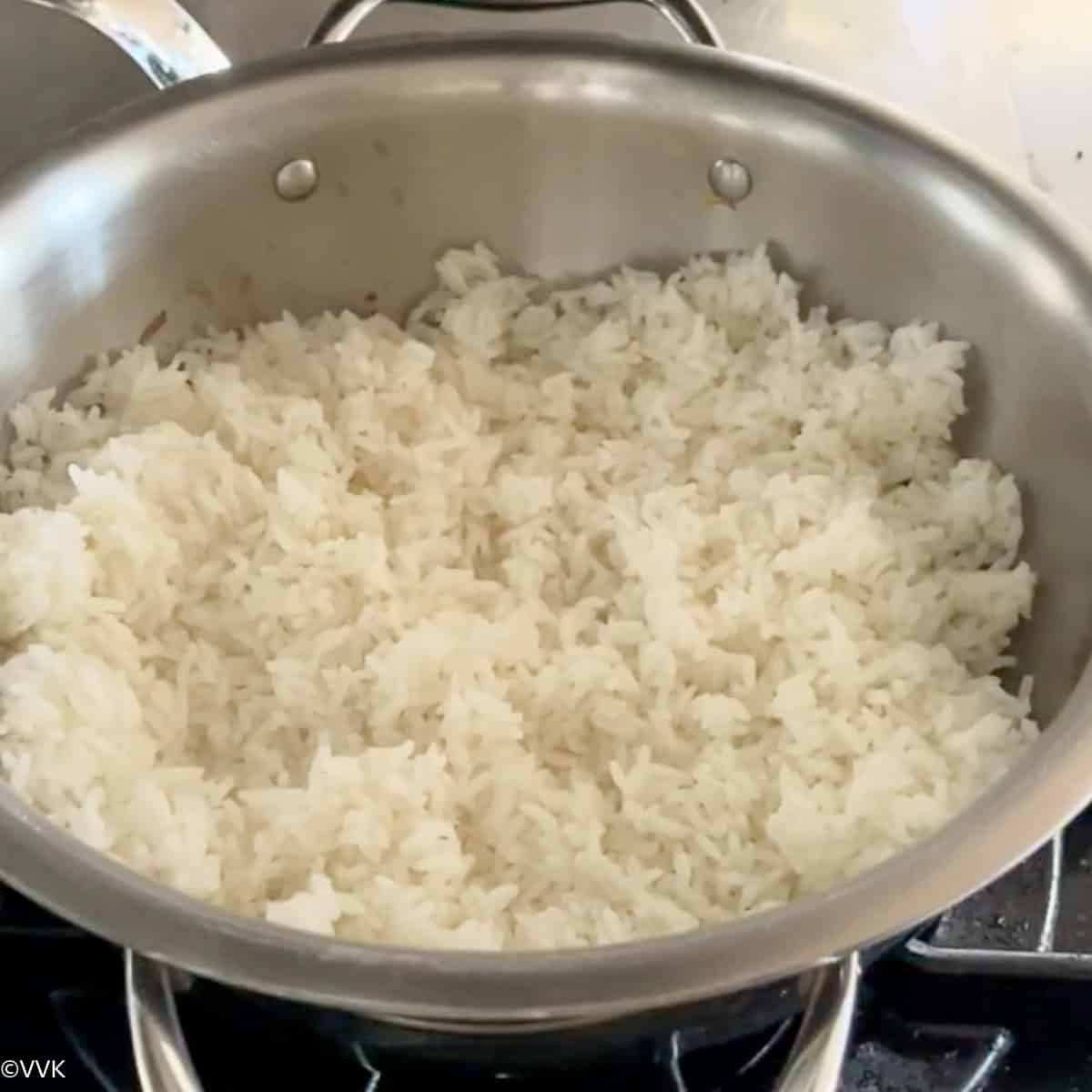 - Add the cooked rice and gingelly oil. Mix. Gingelly oil helps to keep the rice non-sticky.