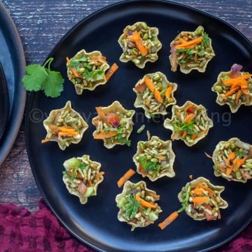Like last year, I decided to share some chaat recipes and healthy snacks that you can prepare, irrespective of the occasion. (Don’t miss to check out my masala puri and tortilla bhel cups that I shared earlier) These are a perfect snack for a Diwali tea party or any chaat party. Guess what? They are easy to make too. It’s just the time that it takes to chop the vegetables.