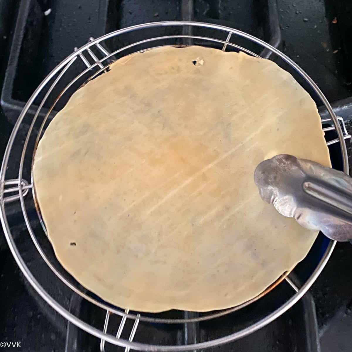 Roasting the papad on stove-top