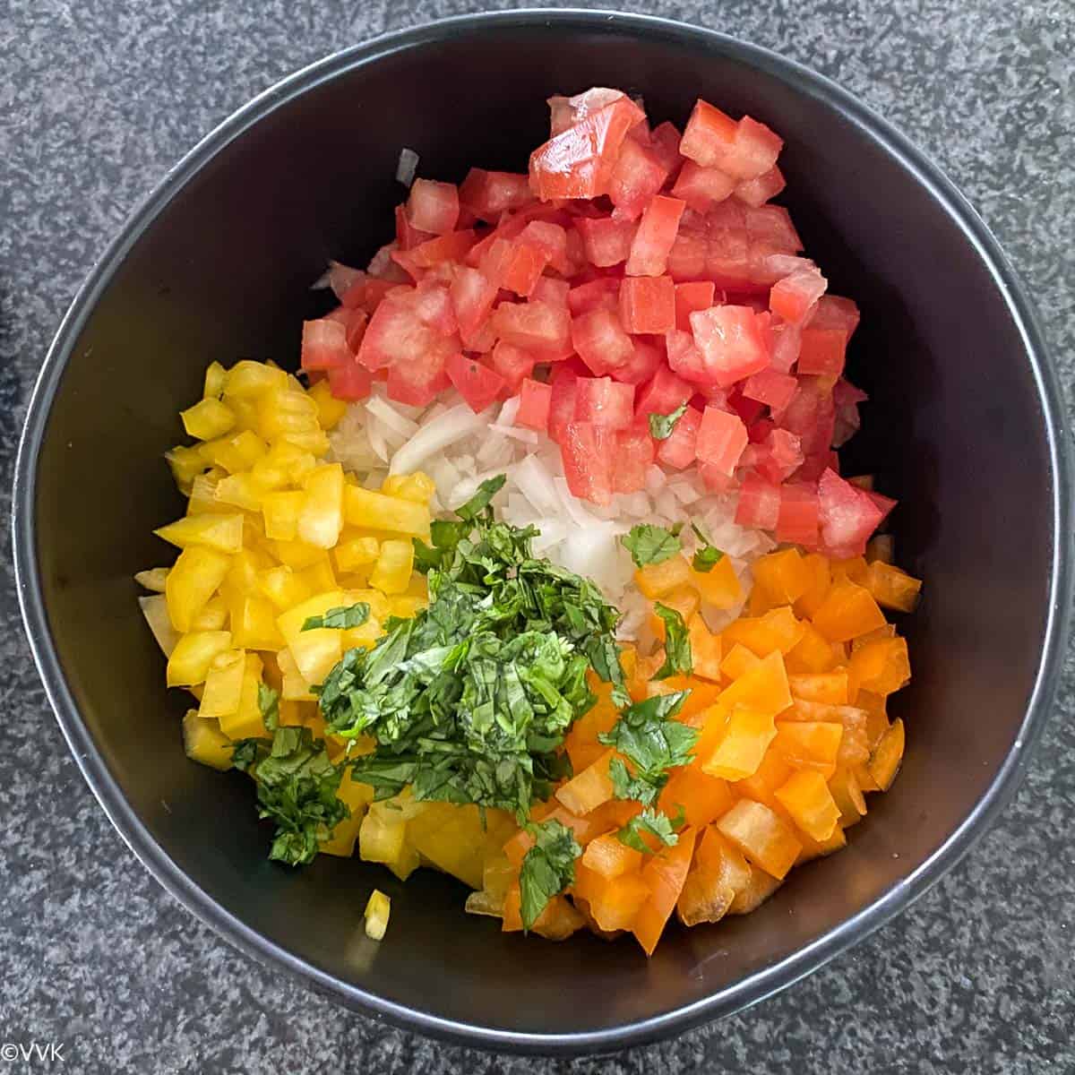 Chop all the required vegetables and add them to a bowl.