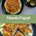 Masala Papad – A simple snack with roasted papad/Indian cracker topped with a tangy and spicy vegetable filling! A perfect tea/coffee accompaniment and a guilt-free snack.