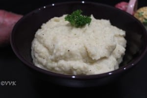 Garlic: I cannot imaging my mashed potatoes without garlic. I add 3 to 4 cloves, just enough to add the flavor. The below measure doesn’t make it too garlicky. I cook the garlic along with the potatoes and mash them well.