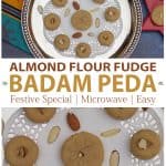 Easy peasy badam peda or the almond flour fudge made in the microwave. You can make this delicious almond peda in less than 30 minutes, start to finish! A perfect sweet to celebrate any occasion.