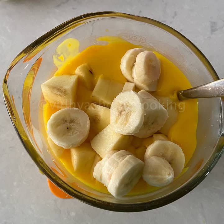 Without any further ado, let’s see how to make this fruit custard in the microwave.