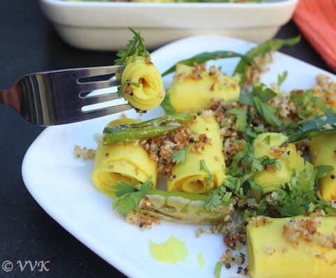 That’s it. Khandvi is ready. :-) Enjoy these bite sized rolls with green chutney.