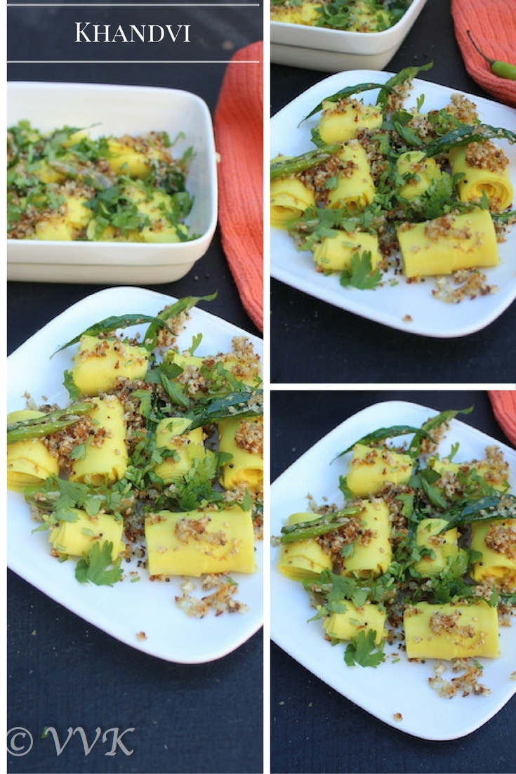 I and Khandvi have had a lot of Neeya Naana (literally it means you or me in Tamil, actually it’s the title of the popular Tamil debate show) moments. Even after all the khandvi research, somehow I screwed it up every time. I can write up to 3 khandvi disaster blog posts, but I never gave up. Luckily I didn’t have to fight like Ghajini, I was able to prepare and roll khandvi in my 4th attempt.