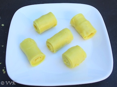- That’s it. Khandvi is ready. :-) Enjoy these bite sized rolls with green chutney.