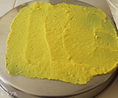 But the cooking process is completely different. We prepare the khandvi mix with besan and yogurt.
