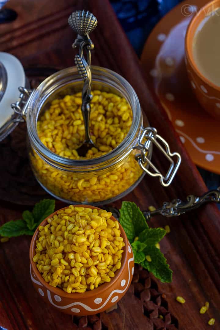 Enjoy your tea/coffee time with this guilt-free non-fried moong dal namkeen or the moong dal chaat. Check out how to easily make this Haldirams’s style moong dal namkeen in your microwave oven and conventional oven with detailed step-wise pictures.