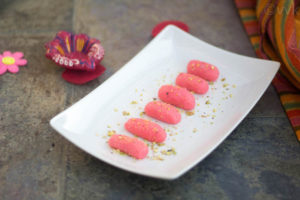 Diwali Special Sweet Recipe – A delicious Bengali Sweet Sondesh or Sandesh prepared with Ricotta cheese in the microwave with the delicate flavors of rose syrup.