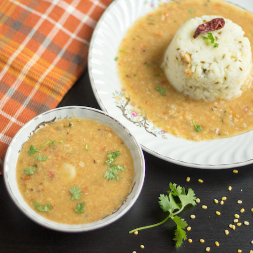 Besan: The interesting ingredient in this dal is the besan/chickpea flour/kadalai maavu. It adds a nice flavor, binds the dal, and plays a major role in providing consistency.