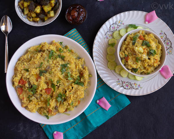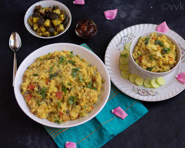 - Instead of Instant Pot, you can use the pressure cooker and pressure pan. Saute all the ingredients and cook the vegetables in the pressure cooker. Then drain the water from the rice and dal and add it to the vegetable mix, followed by three cups of water. Pressure cook for up to 3 whistles or hisses over medium heat. Let the pressure release naturally and mash the rice and lentils.