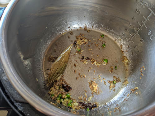 - Set the Instant Pot in saute mode and when the display reads “HOT”, add the oil or ghee. Wait for 30 to 45 seconds.