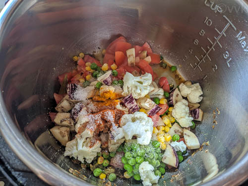 - 1 cup mixed vegetables chopped (I used potatoes, cauliflower, eggplant, peas)
