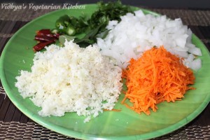 - Now add the grated carrot and cauliflower and cook for couple of minutes along with salt..
