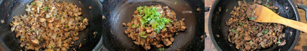 - Mix it well and cover and cook for two minutes. Do not add water, as mushroom oozes out water.