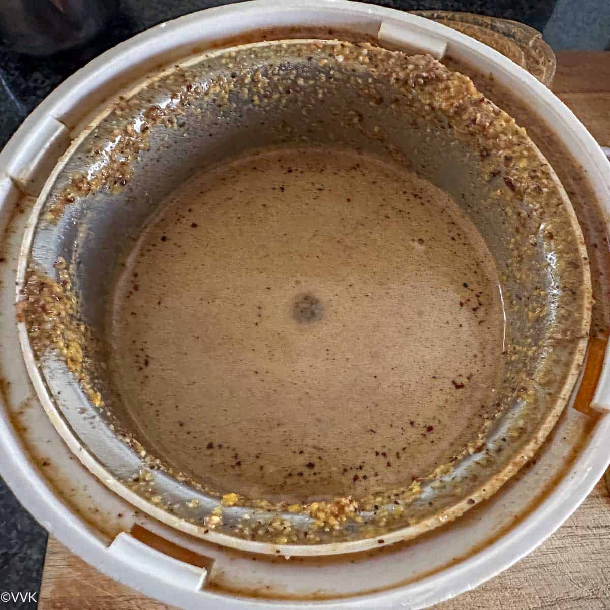 - Let this mix cool and grind it with ¼ to ⅓ cup of water in a semi-smooth paste.
