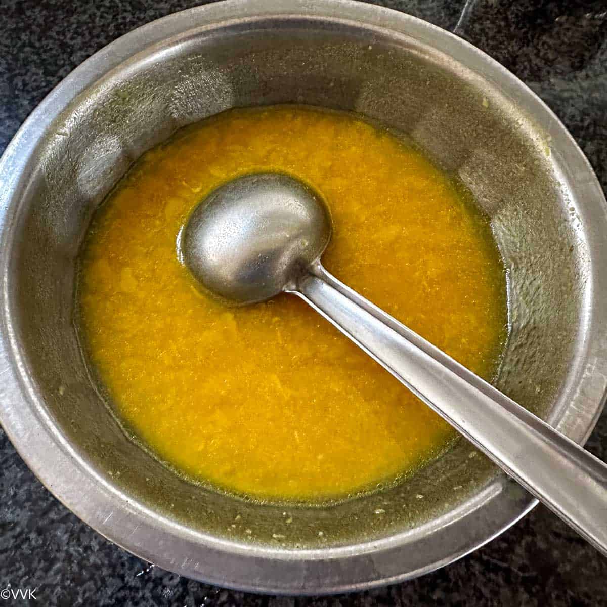 - Make sure you cook the dal nicely. It should be mushy so that it blends well with rasam. You can also use frozen toor dal for this rasam.