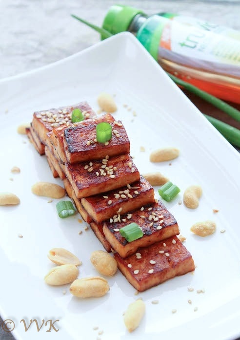 Honey glazed tofu was in my to-do list and when I got my Truvía® Nectar the first recipe that I came in my mind was this glazed tofu. So to recap, Truvía® Nectar is made with stevia and honey, with 50% fewer calories than sugar. I wanted to try a traditional Indian recipe too and as it was Navratri, Quinoa kheer with nectar was perfect and posted it last week. At the same time, I couldn’t let go of my tofu recipe too. So tried it right away and here I am, sharing the same with you all.