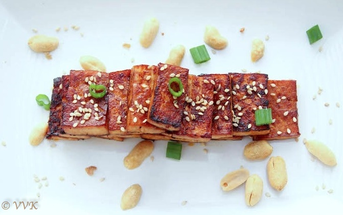 - That’s it. Yummy nectar glazed tofu is ready. Drizzle the roasted sesame seeds on top before serving.