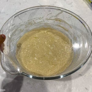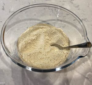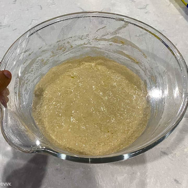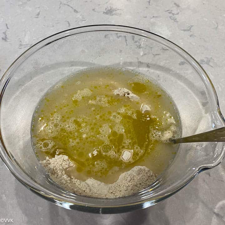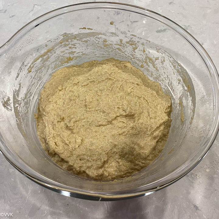 - Whisk(you can use a wire-whisk or spoon or fork) until all the ingredients are well combined. You don’t need to knead.