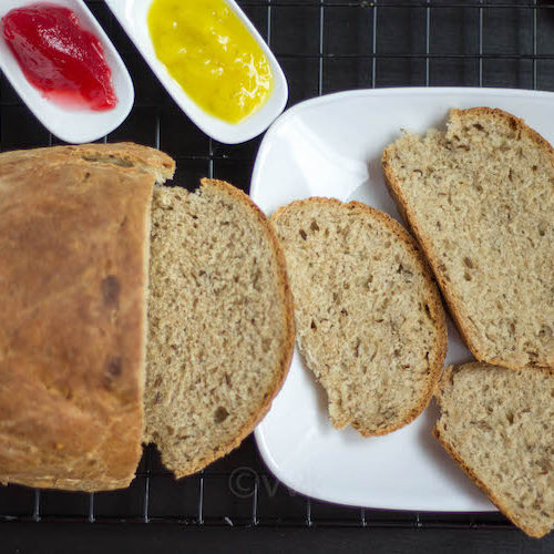 Homemade bread has its charm. I got into bread baking only after joining the blogging marathon group. And this no-knead wheat bread was the very first bread that I tried with yeast. Of course, I got this base recipe from Varada’s kitchen, one of my blogging friends from this group. I followed the measure precisely, but I had to adjust the water measure.