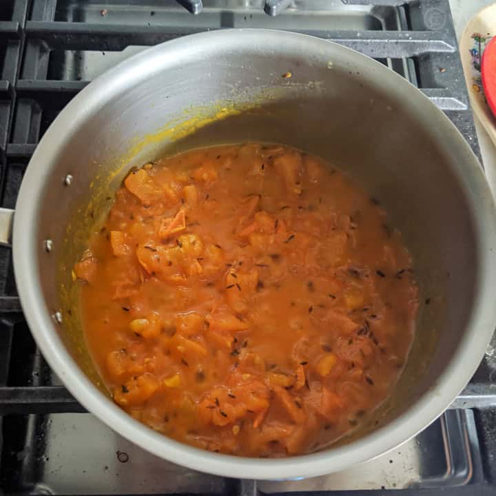 - Cover and cook till the tomatoes become soft and mushy.