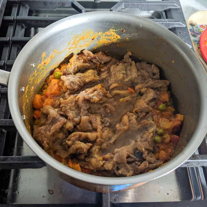 - If you prefer a gravy consistency or semi-solid, then add about ½ to 1 cup of water after adding the eggplant. I made it more like a dry curry as we prefer it that way.
