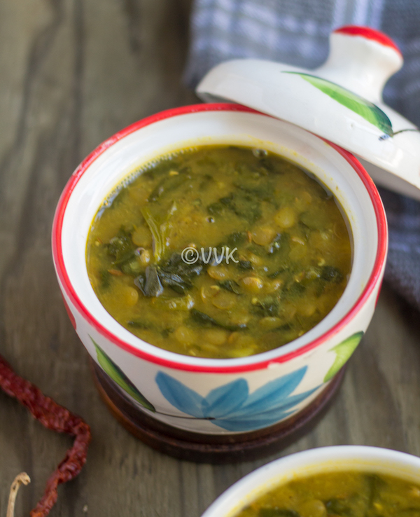As we traditionally make the spinach kootu with moong dal, I thought of trying the dal palak with other lentils. Green lentils are one among the common lentils that you can find on all grocery stores here in the US. So I went with that option.