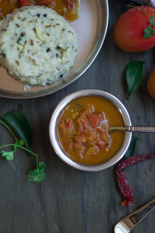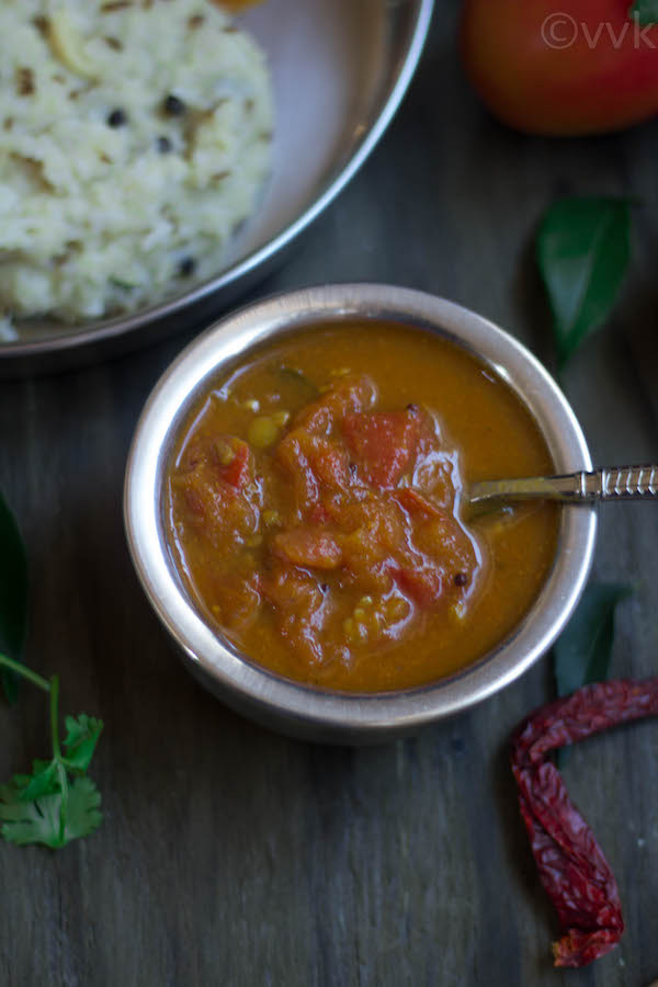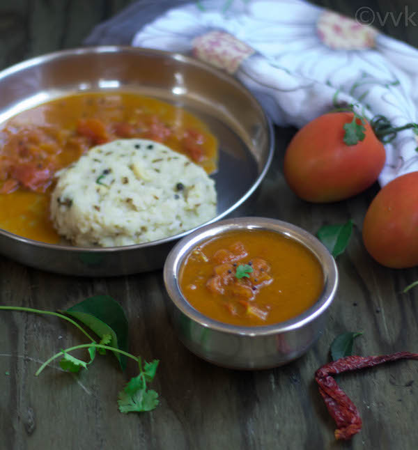 - Adjust the salt, jaggery and tamarind amount according to the sourness of the tomatoes and according to your taste preference.
